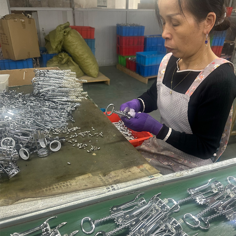 Весь штопор достиг своего окончательного процесса - сборки. Сначала мы классифицируем все обработанные полуфабрикаты по типам компонентов. Сотрудники отдела контроля качества (QC) проводят предварительные проверки, чтобы подтвердить, что эти полуфабрикаты соответствуют всем спецификациям продукта по функциональности, цвету и качеству поверхности. Затем квалифицированные и дефектные детали отделяются и обрабатываются индивидуально. Отчеты о проверках составляются и передаются как в производственный отдел, так и в складской отдел. В соответствии с установленным Руководством по спецификациям продукции, квалифицированные полуфабрикаты отделяются и обрабатываются индивидуально. хранятся на складе и впоследствии поступают на производственную линию для сборки.